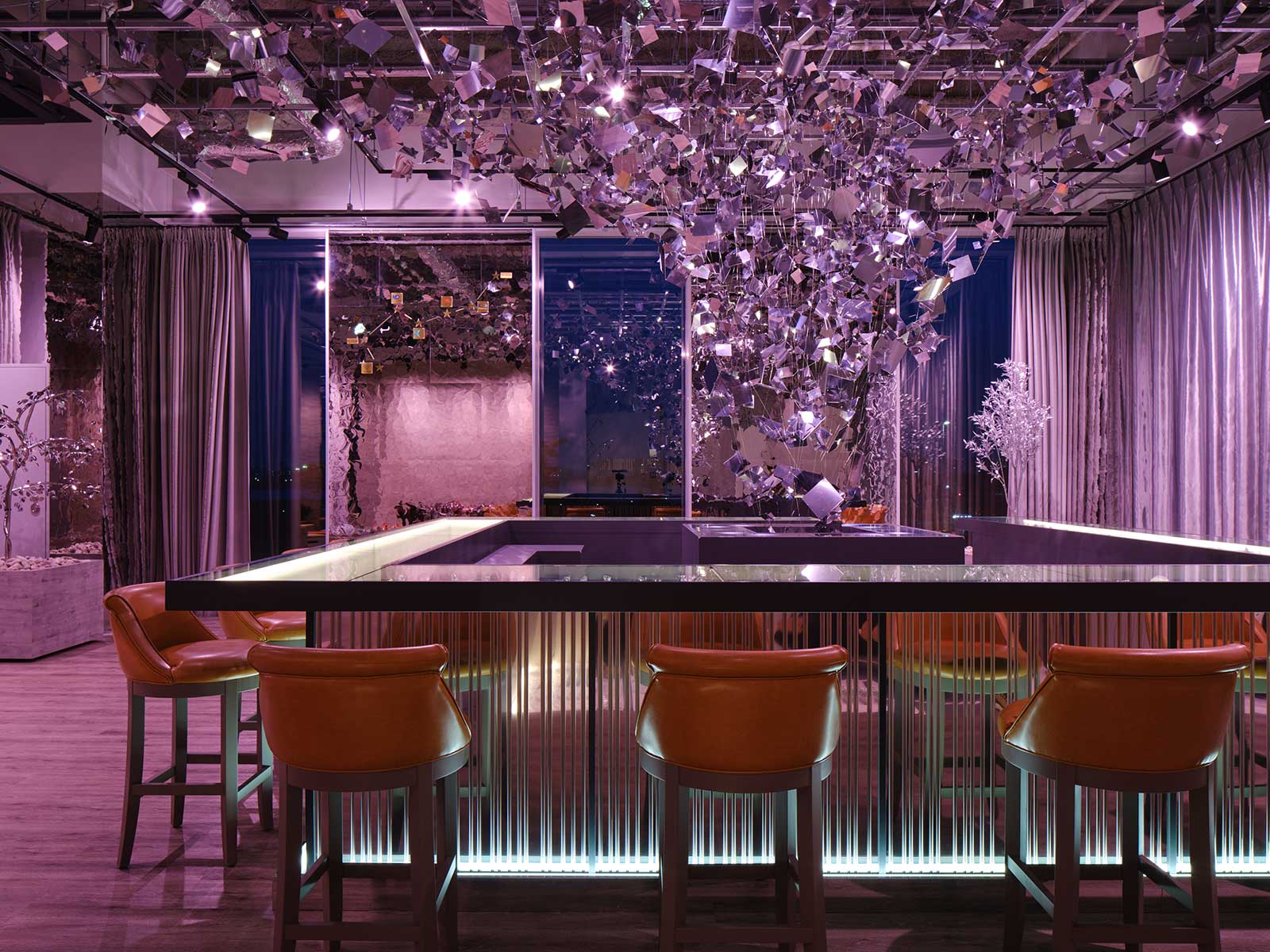 The space has the appearance of a luxurious bar, and as a commitment to manufacturing specialists, a high level of technology and creativity has been poured into the interior, furniture, and furnishings.